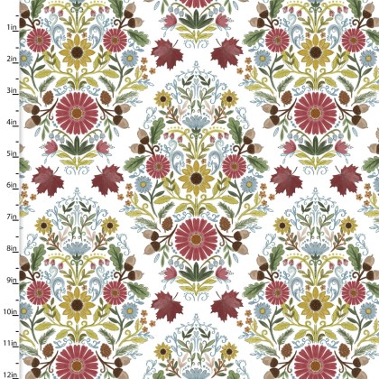 3 Wishes - Autumn Meadow - Damask Flowers, White