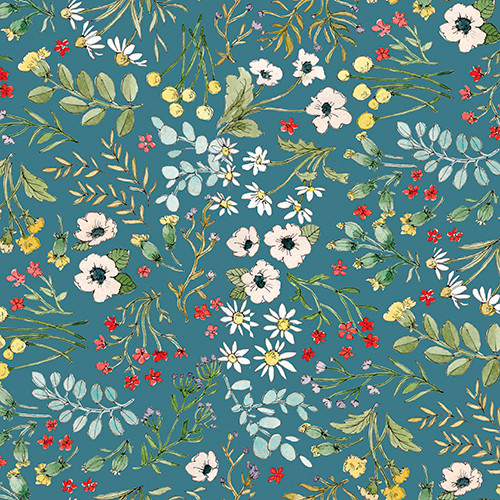 New designer, Caverly Smith for 3 Wishes fabric, brings a bucolic farm to life in this delightful 5-piece collection. Caverly’s hand drawn-style creates a sweet, yet life-life depiction of chickens and their coops, bunnies, spring blooms, and adorable ducklings being led by their mamas.
