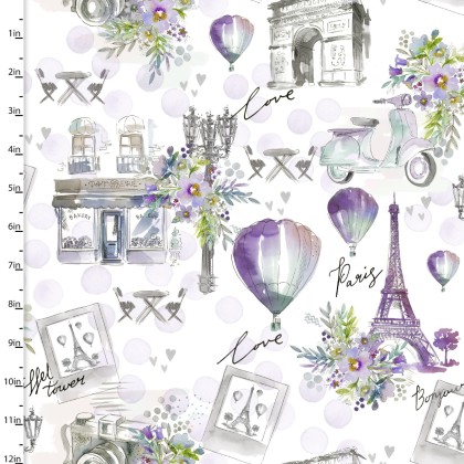 /Shopping/Fabric/Fabric (Shop By Manufacturer)/3 Wishes/Lost in Paris/3 Wishes - Lost in Paris - Paris Motifs, White