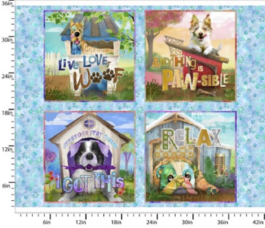 3 Wishes - Raise The Woof - 36" Doghouses Panel, Multi