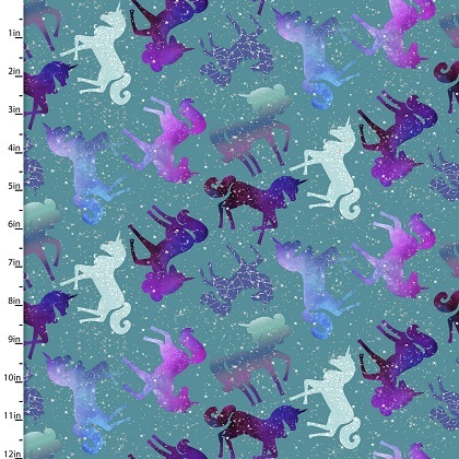 3 Wishes - Starlight - Star Tossed Unicorns Glitter, Turquoise