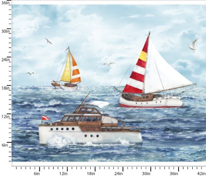 Fair Winds & Following Seas is a nautical-inspired fabric collection that captures the spirit of open waters and maritime adventure. Featuring elegant sailboats, intricate blueprints, and sweeping seascapes in a soothing palette of ocean blues and crisp whites, this collection evokes the timeless charm of life at sea. Whether you're designing coastal home décor, nautical quilts, or seaside apparel, Fair Winds invites you to set sail on a creative journey where every stitch echoes the call of the sea. Licensed fabric from Michael Moon.