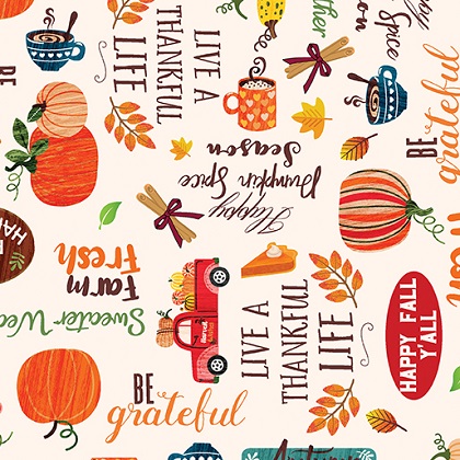 Live out your best pumpkin spice life with Hayrides & Happiness, our adorable new line featuring fun fall inspired prints. This bright, modern collection features playful prints from toasty drinks, colorful foliage, plump pumpkins, and all of fall’s goodness. The leaves are falling, and Autumn is calling, so enjoy sweater weather with these festive fabrics!
