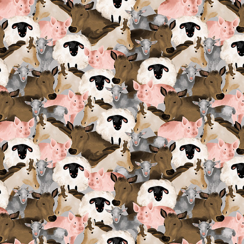 Blank Quilting - Farm Country - Farm Animals Collage, Gray