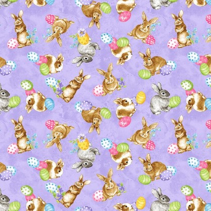 Blank Quilting - Spring is Hare - Tossed Bunnies, Purple