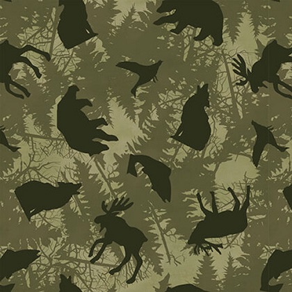 /Shopping/Fabric/Fabric (Shop By Manufacturer)/Blank Quilting/Wilderness Trail/Blank Quilting - Wilderness Trail - Animal Silhouettes, Olive