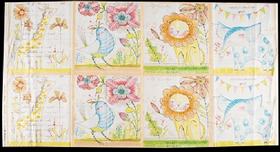 Hello World is a whimsical fabric collection designed by Cori Dantini. It features adorable animals, floating balloons and geometrics. Great menagerie of designs for your next nursery project!