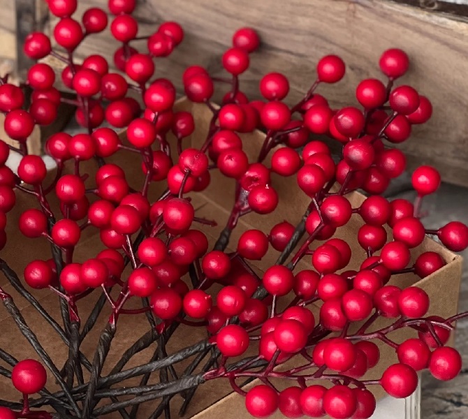Bold red berries add a beautiful dash of color wherever they are displayed. Their weatherproof coating allows for even more versatility and makes them a wonderful addition to any line!