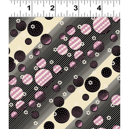 Clothworks - French Connections - Diagonal Circle Stripe, Dark Butter