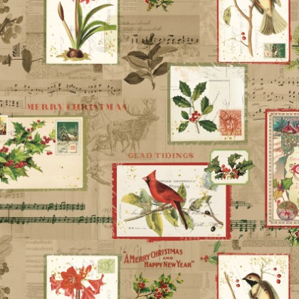 Clothworks - Holiday Nostalgia - Postcards, Light Caramel