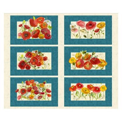 Clothworks - Poppy Dreams - 36" Placemat Panel, Teal