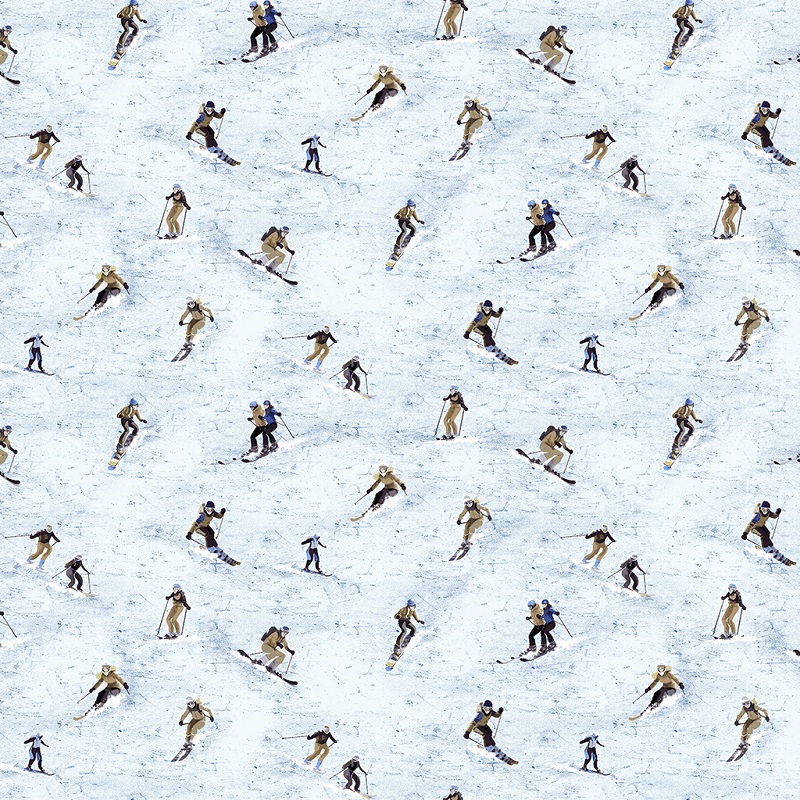 /Shopping/Fabric/Fabric (Shop By Manufacturer)/Clothworks/Snow Mountain/Clothworks - Snow Mountain - Skiers, Light Denim