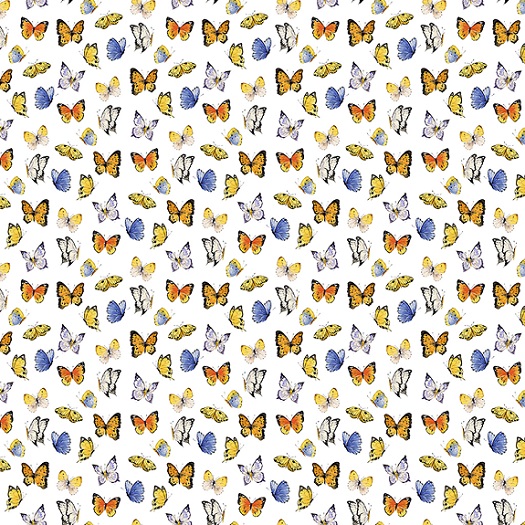 Clothworks - Sunflower Bouquets - Butterflies, White