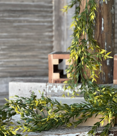 Multitudes of spear shaped leaves compose this lovely greenery. The leaves lighten to a goldish tip in an Ombre fashion making this collection even more striking.