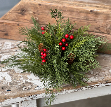 This collection is a classic pairing of cedar, red berries, and pine cones.