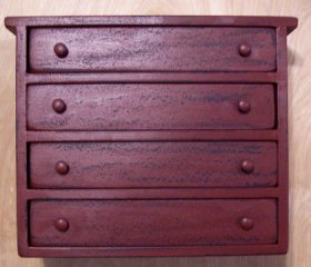 This Hanging 4 Drawer Shelf can also be used as an accent piece on your furniture. It features 4 simple drawers and is available in 3 different colors. It is made in the USA!