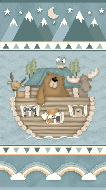 Dream Big Little One by Shelly Comiskey is a beautiful depiction of the story of Noah’s Ark. This 11-piece collection features a panel with the animal-filled ark. Bears, racoons, foxes, moose, deer, owls and hedgehogs are all invited to ride along. This collection is brought together with a color palette of blue, beige and light yellow. The moon and stars light up the night sky for these travelers! Rainbows spread across clouds above the forest. Patterns include tossed arks, racoons, and animals on top of the moon and stars. There is also a 24" continuous block pattern and a stripe. These soft patterns are perfect for any quilting project for the young as well as for nursery décor.