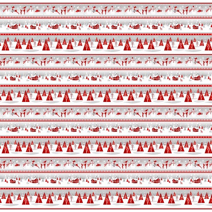 Jan Shade Beach has gone back to her graphic art style on her newest 2-ply flannel line. It was created in her signature color palette of red, gray and white. The block print features winter scenes that showcase a polar bear, reindeer, snowmen, a winter village and a field of trees. The allover designs include tossed polar bears, stacked trees, snowflakes, tossed snowmen, some quiet monotones and a bias plaid for some relief prints.