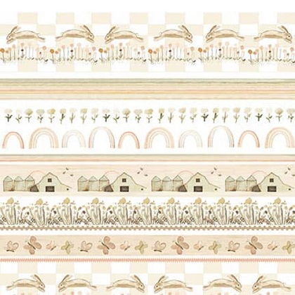 You Are My Sunshine is a beautiful watercolor collection. The muted pinks, greens, and browns create a peaceful and comforting color palette. Rabbits, birds, butterflies and bunnies are surrounded by delicate flowers. The sun shines bright outside above the barn. Rainbows burst through the sky as if the sky is smiling. Create a book for the loved ones in your life using the panel in this collection. Pair the book with an exquisite quilt that uses the various prints in this collection for the perfect gift.