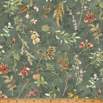 /Shopping/Fabric/Fabric (Shop By Manufacturer)/Hoffman California/Harvest Bouquet/Hoffman California - Harvest Bouquet - Floral Sprigs, Earl Grey