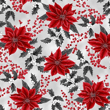 Hoffman California - Holiday Decadence - Red Poinsettia, Silver/Light Gray