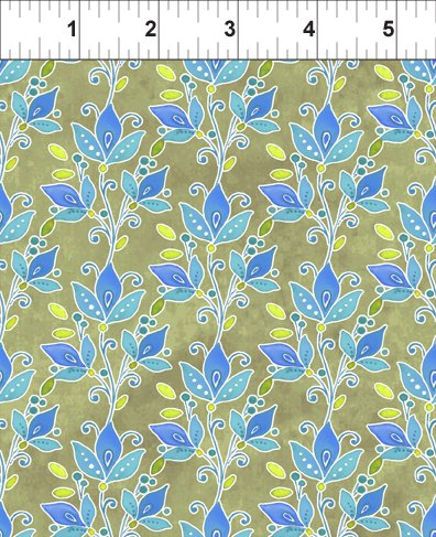In The Beginning - Ajisai - Floral Leaf, Sage/Blue
