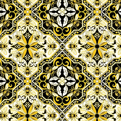 Our new Buzzworthy collection is enhanced with Metallic gold and buzzing with splendor. The star of the collection is the regal panel - a beautiful bee house swarming with velvety bees and dazzling daisies. The coordinates feature a unique zig zag stripe border print, lovely florals, stylized bees and classic honeycomb geometrics. Use this collection for your next quilt project, pillows, aprons and gifts for the bee lover in your life!