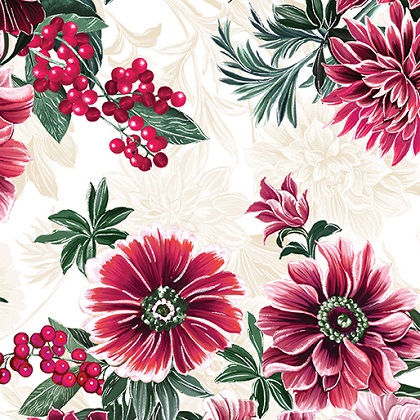 Large full flowers burst into bloom, stylized botanicals sway in the breeze, and an elegant stripe adds the perfect finishing touch to this sophisticated collection. The coordinates include delicate scrolls, graceful medallions and lovely leaves. In exquisite shades of berry, pink, sage and cream all highlighted with a hint of pearlescent, Winterberry Floral has everything you need to create chic quilts, throws and home décor projects.