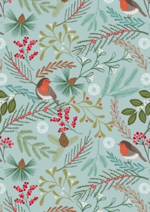 Lewis & Irene - New Forest Flannel - Robin in Woodland, Icy Blue