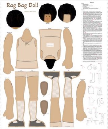 Make your own 32" Rag Bag Doll! A great gift for a little friend! Just cut out all the pieces, sew right sides together, turn right-side out, add 16 oz. of Fiberfill and presto! You have a new handmade rag doll! Dress and embellish your doll as desired!