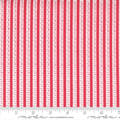 Moda - Beautiful Day - Ticker Tape Stripe Numbers, Scarlet