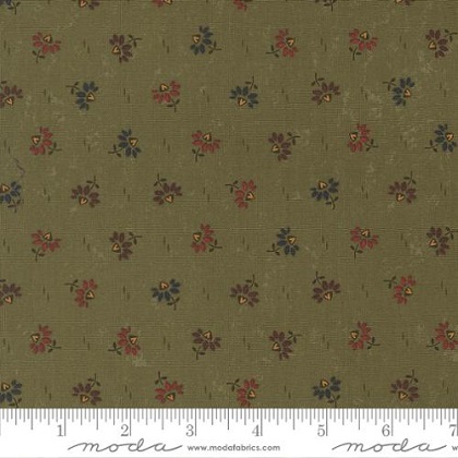 Wheatland by Kansas Troubles Quilters for Moda Fabrics evokes the serene beauty of the Midwest during the golden days of summer. This fabric features a lovely floral design with dark blue, yellow, and red flowers set against a warm tan background. Add this to your next quilting project for a touch of rustic charm!