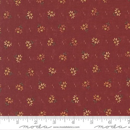 Wheatland by Kansas Troubles Quilters for Moda Fabrics evokes the serene beauty of the Midwest during the golden days of summer. This fabric features a lovely floral design with dark blue, yellow, and red flowers set against a warm tan background. Add this to your next quilting project for a touch of rustic charm!