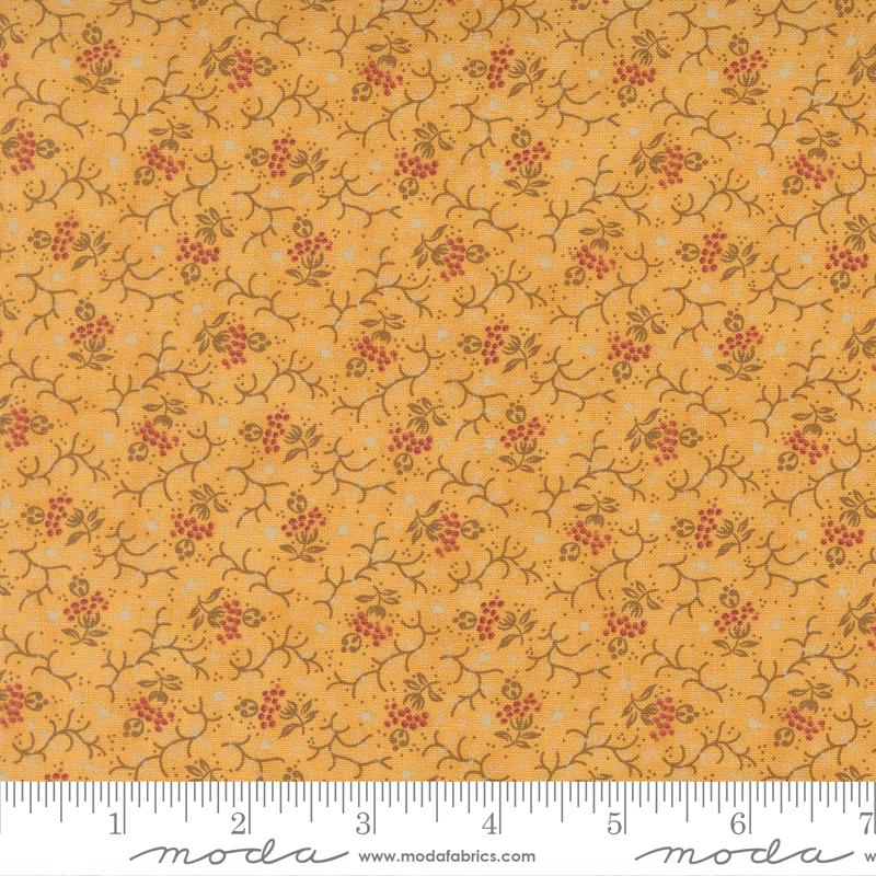 These wonderful wild prints were first released in 2017. The fabric line was used in the book, The Raven. The plaid print is used for the background of each of the nine blocks and offers a calm background for the large-scale prints used throughout the rest of the quilt. This fabric line really makes this autumn quilt spectacular. The movement of the applique shapes enhanced by the large-scale prints lends a feel of a windy autumn evening.
