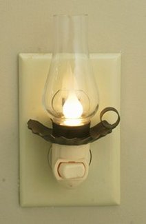 2" wide, 3" tall from night light base to top of chimney, 2" deep. Glass chimney; Rustic Brown tin base.