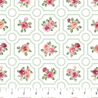 Northcott - Blush - Floral Grid, White