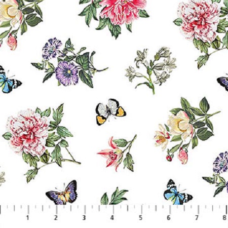 Botanica was designed by Michel Design Works. A lovely floral print with butterflies, swiss dots and stripes, this collection is perfect for quilts, home decor and purses. Included is a panel that can be used for place mats or pillows.
