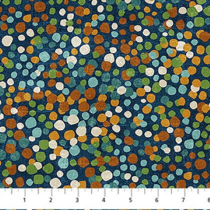 Created by Brett Blumenthal, Dino Roar is sure to please every little paleontologist. The Dino Roar panel can be easily deconstructed and reconstructed to create various blocks or used as the focal point of a quilt or wall-hanging. The collection Also includes a quick sew drawstring backpack. In addition, a variety of dinosaur prints are offered along with dino fossils, footprints and dots. A palette of navy, teal, rust, green and beige characterize the collection.