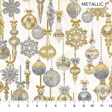 Northcott - White Christmas - Stonehenge - Baubles, Light Cream