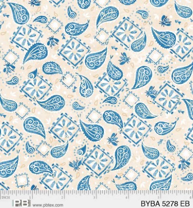 P & B Textiles - Barnyard Babies - Paisley Print, Ecru/Blue
