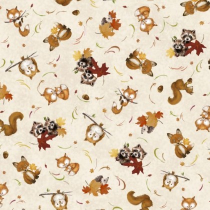P & B Textiles - Fall Friends - Tossed Forest Friends, Ecru