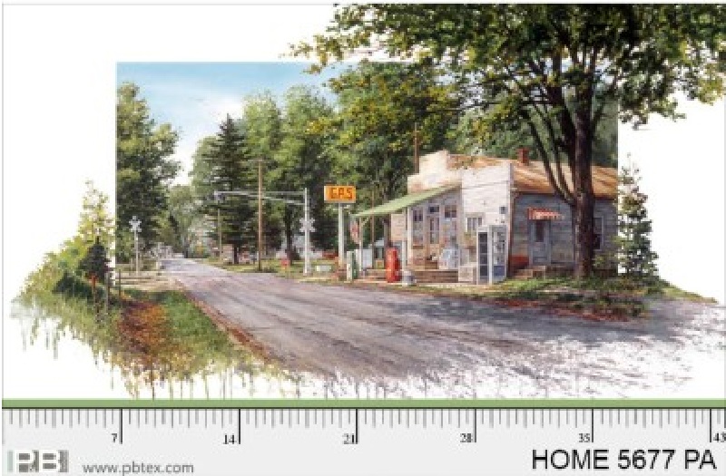 P & B Textiles - Hometown - 24" Gas Station Panel, Multi
