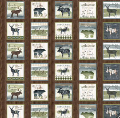 Immerse yourself in the serene beauty of the outdoors with Lodge Life, a captivating quilting fabric collection by Deane Beesley for P&B Textiles. Inspired by the tranquil ambiance of woodland retreats, this collection features rustic motifs that evoke the spirit of nature. Silhouettes of majestic bears, moose, and deer wander through a landscape of pinecones and delicate paw prints, while textured wood patterns create a warm and inviting backdrop. The earthy palette of browns, greens, blues, and crisp whites captures the essence of a cozy lodge, perfect for bringing the feel of the forest into your home.