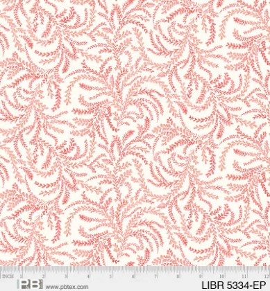 P & B Textiles - Love Birds - Pink Curly Vines, Ecru