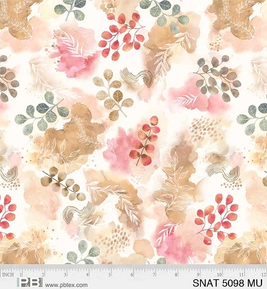 P & B Textiles - Serene Nature - Painted Leaf Toss, Multi