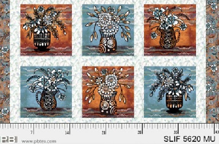 P & B Textiles - Still Life - Flower Vase 10" Blocks, Multi