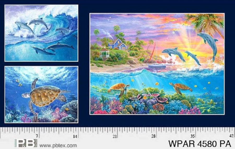 P & B Textiles - Weekend in Paradise - 24" Frolicking Dolphin Panel, Multi