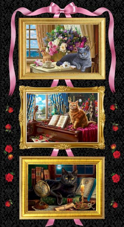 Print Concepts- Madame Victoria's Elegant Cats - 24" Panel , Multi