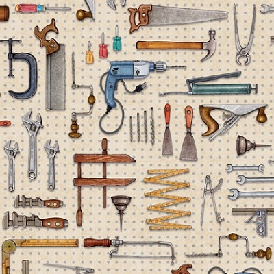 No matter what the skill level, Dan Morris celebrates those that create, construct, and fix all that makes the world a finer place. Small-scaled carpenter’s tools appear in a decorative stripe and tossed layouts. Create a custom quilt, apparel, or accessories for your favorite handyperson with this one-of-a kind collection!