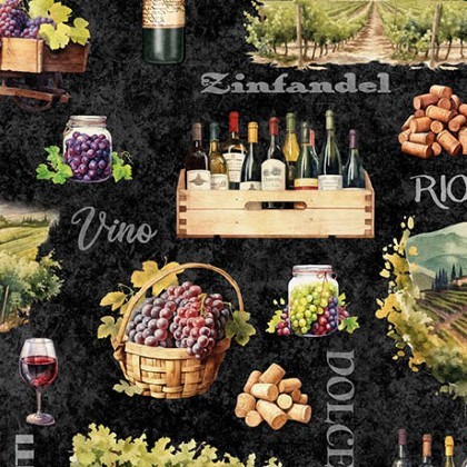 Quilting Treasures - Cork & Barrel - Wine Motifs and Regions, Charcoal